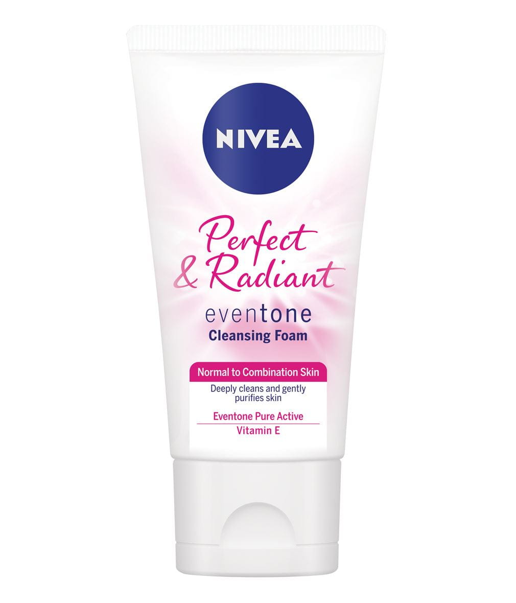 NIVEA Perfect & Radiant Cleansing Foam formulated for Normal and Combination Skin, is enriched with Eventone Pure Active and Vitamin E, it works in harmony with your skin to deeply clean and gently purify the skin. Your skin looks fresh and clean and feels soft and smooth.
